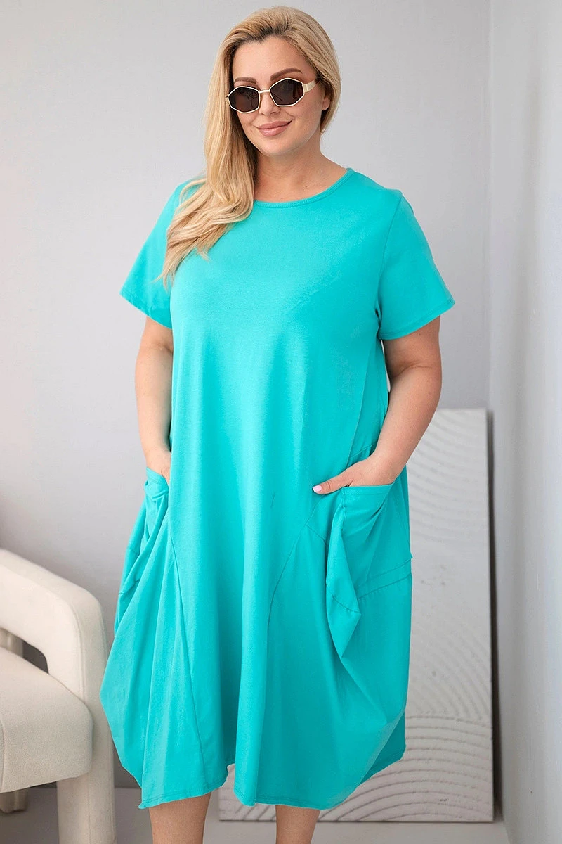 Dámské bavlněné šaty Plus Size s kapsami mátová