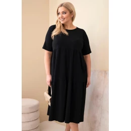 Dámské bavlněné šaty Plus Size s krátkým rukávem a volánem černá