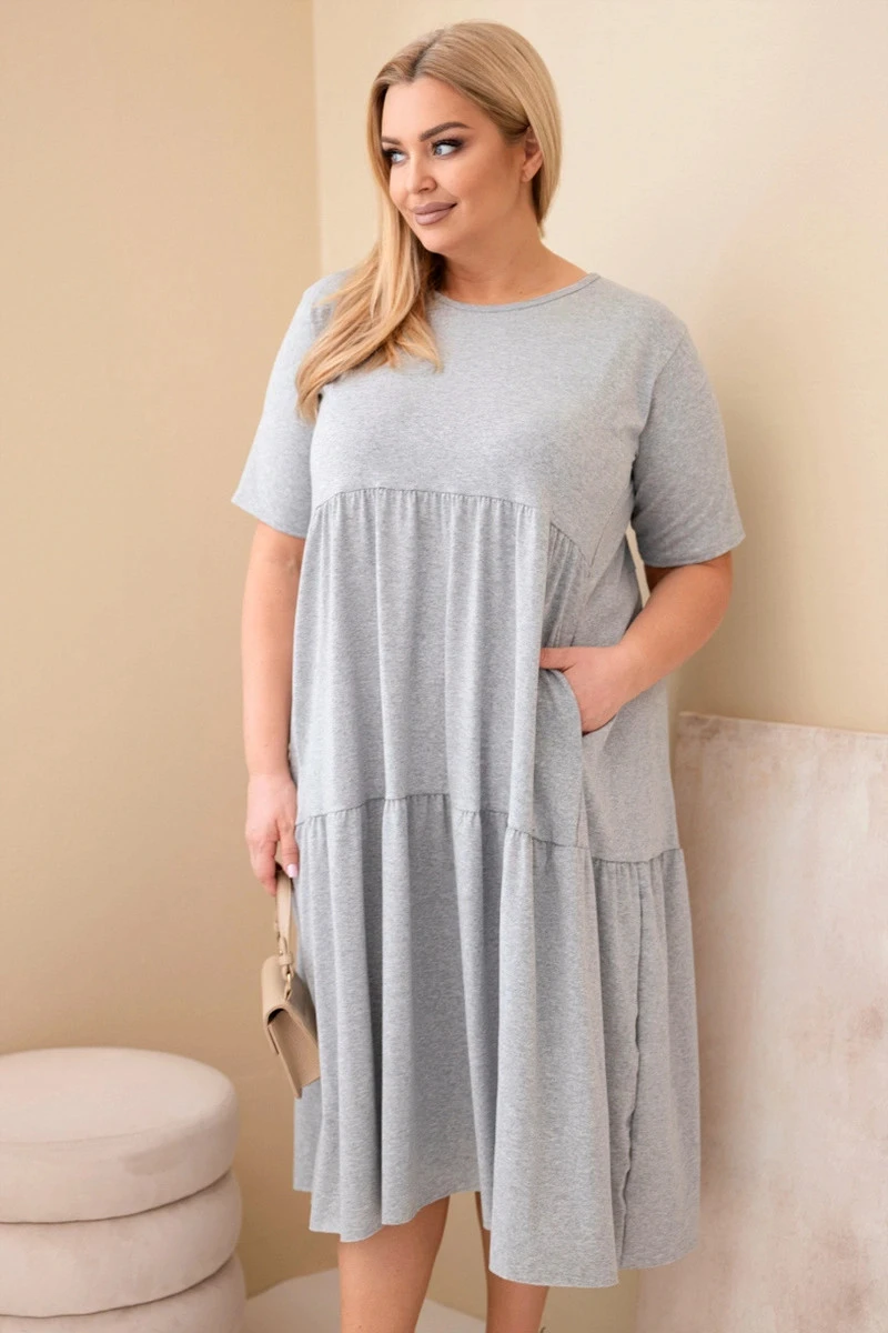 Dámské bavlněné šaty Plus Size s krátkým rukávem a volánem šedý melír