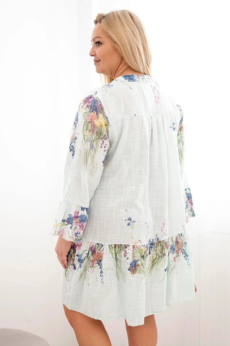 • Dámské bavlněné šaty Plus Size s výstřihem do V a knoflíky, květinový vzor mátové