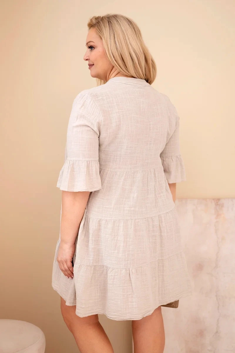 3. Dámské bavlněné šaty pro model 22021054 s volánky béžová - K-Fashion
