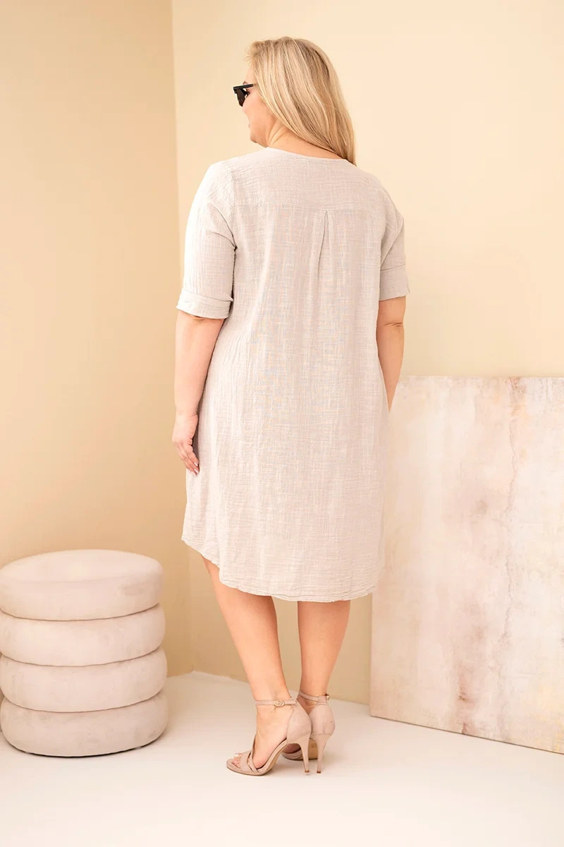 Díky své univerzálnosti se bavlněné šaty plus size výborně hodí jak k sandálům, teniskám, tak k lehkým espadrilkám. Jsou skvělým základem pro každodenní stylizace v casual, boho nebo městském stylu. Přírodní složení materiálu zajišťuje šetrnost k pokožce a pohodlí i při celodenním nošení.