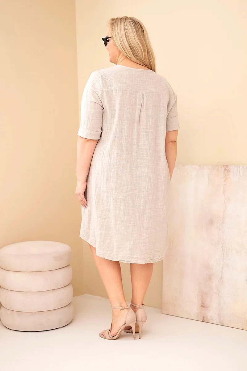 Dámské šaty plus size jsou vynikající nabídkou pro ženy, které si cení pohodlí, volnosti a přírodních materiálů. Vyrobené ze 100% bavlny zajišťují prodyšnost a komfort při nošení i v teplejších dnech. Lehký, prodyšný materiál činí šaty ideální volbou do jarně-letního období, jak na běžné nošení, tak na dovolené.