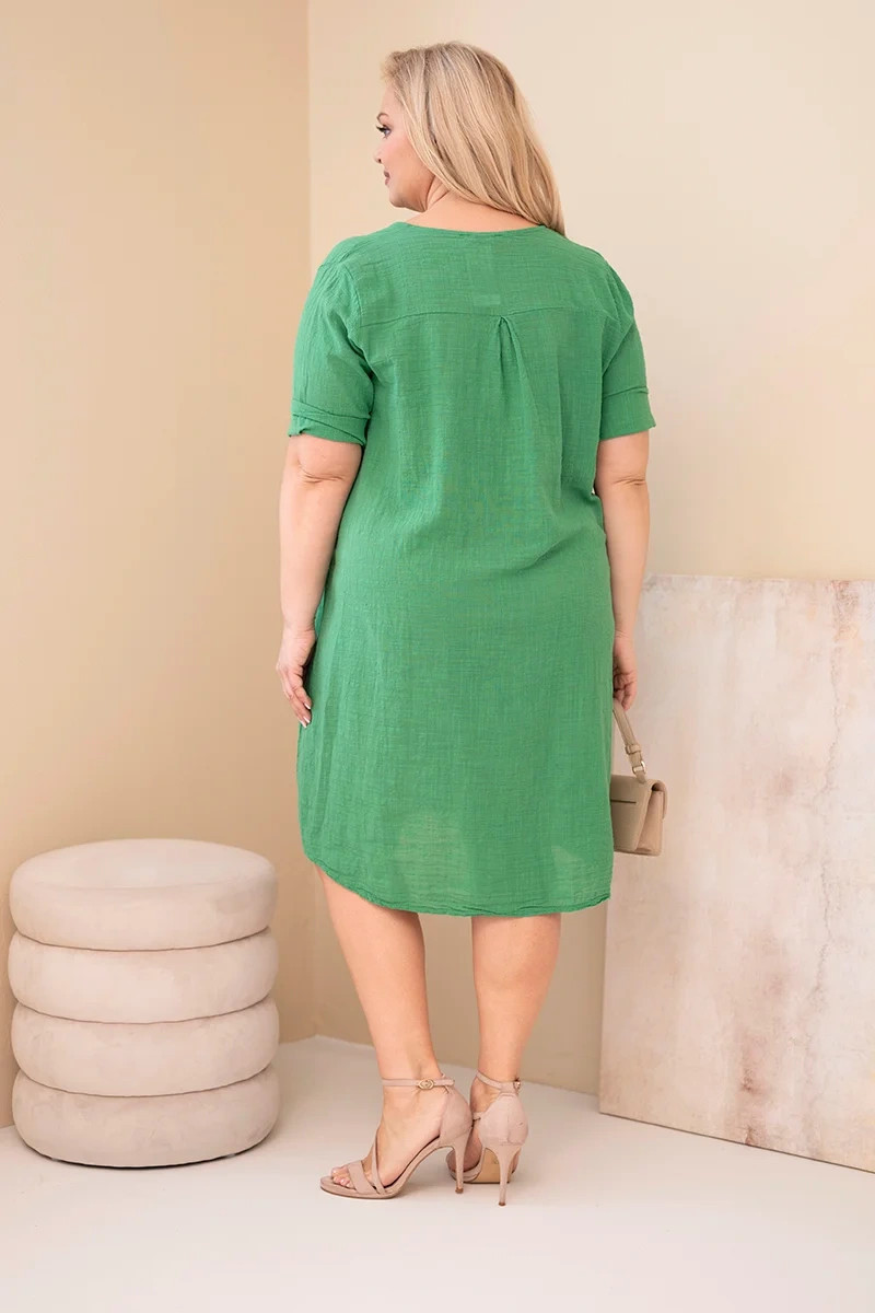 3. Dámské bavlněné šaty pro plnoštíhlé s vázáním u výstřihu zelená