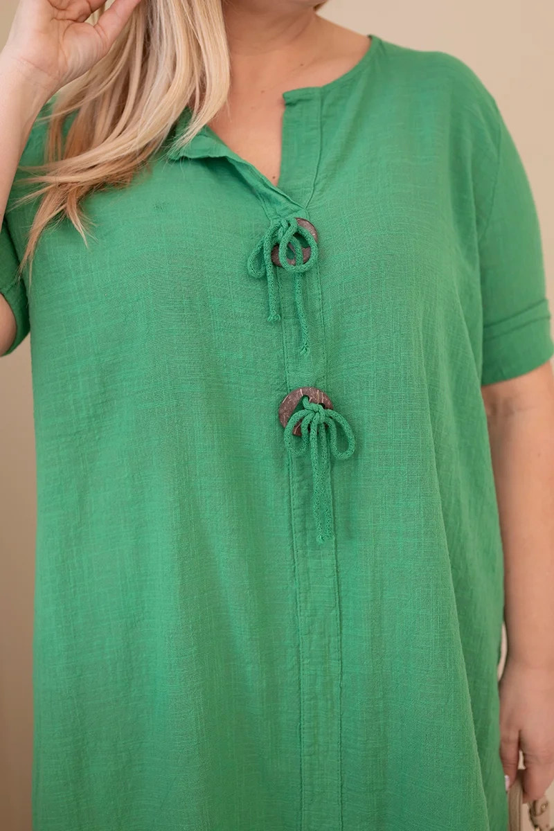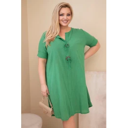 • Dámské bavlněné šaty pro plnoštíhlé s vázáním u výstřihu zelená
