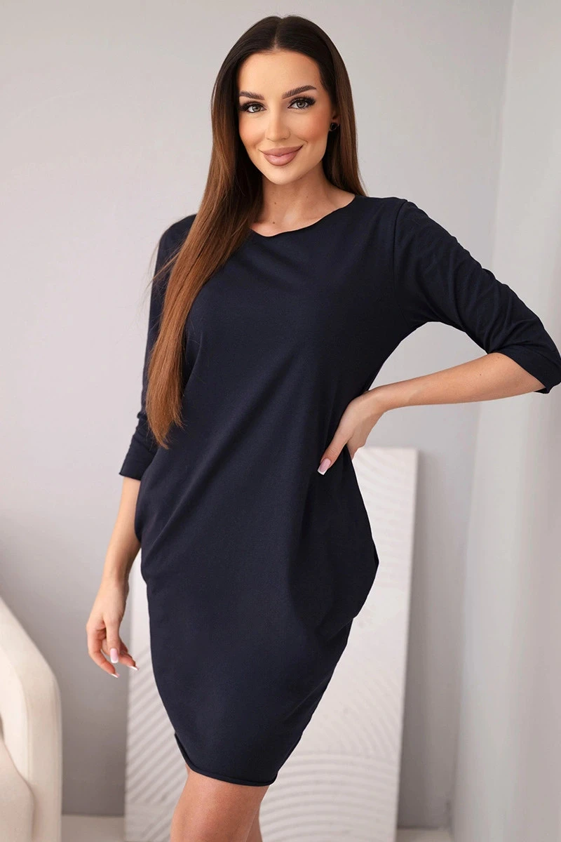 Dámské bavlněné šaty s 3/4 rukávem a kapsami tmavě modré