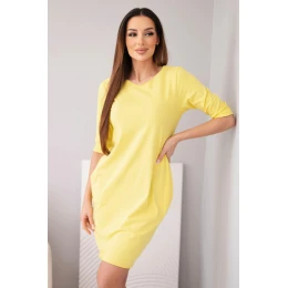Dámské bavlněné šaty s 3/4 rukávem a kapsami žlutá
