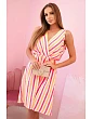 Dámské bavlněné šaty s barevnými pruhy v neonově oranžové barvě