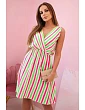 Tyto dámské šaty s barevnými pruhy jsou ideální volbou na teplé letní dny. Ušité ze 100% přírodní bavlny poskytují nejen prodyšnost, ale i vysoký komfort nošení. Překládaný výstřih krásně zvýrazní poprsí a mírně rozšířený spodní díl dodá postavě lehkost a dívčí půvab. Šaty jsou skvělé na každodenní nošení, procházku po pláži, letní setkání s přáteli nebo dovolenou. Volný střih a elastický pas zajišťují pohodlí a přizpůsobení různým postavám. Svislé pruhy v energetických barvách opticky zeštíhlují postavu a přitahují pohledy. Velikost je univerzální a bude vhodná pro ženy velikostí S, M nebo L.