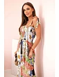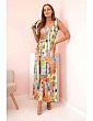 Výjimečné dámské maxi šaty se širokými zavazovacími ramínky jsou ideální volbou na slunečné dny! Zaujmou pestrým květinovým potiskem, který přitahuje pozornost a dodává letní nádech každému outfitu. Horní část šatů je zakončena elastickým řasením, díky čemuž se perfektně přizpůsobí postavě a zajišťuje pohodlí i skvělý vzhled. Dlouhá, volně splývající sukně dodává lehkost a krásně se pohybuje při chůzi. Skvělé na dovolenou, procházky po pláži, zahradní párty nebo letní setkání s přáteli.