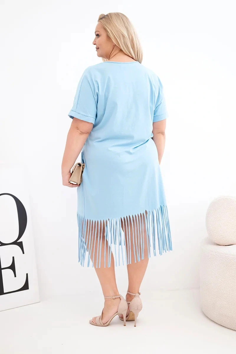 Dámské bavlněné šaty s výstřihem do V a s třásněmi Plus Size modrá