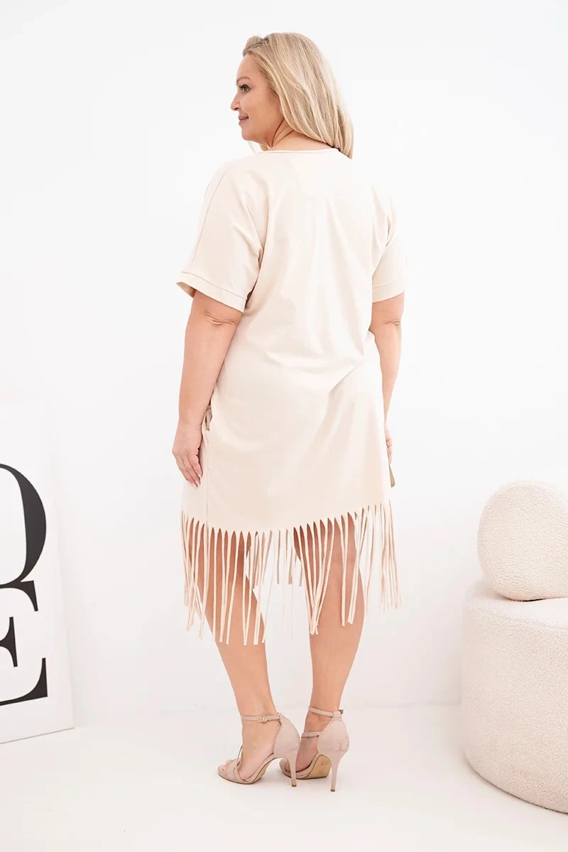 Dámské bavlněné šaty s výstřihem do V a třásněmi dole béžová