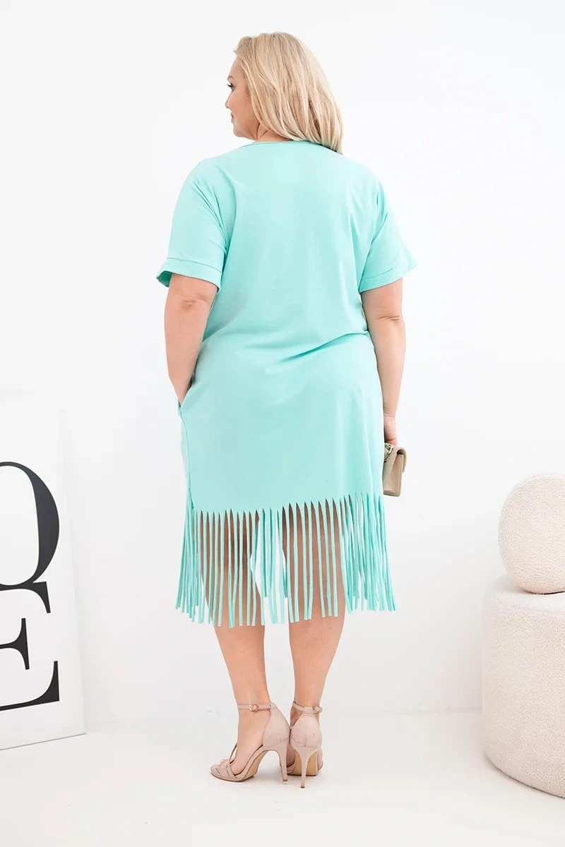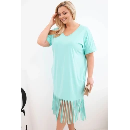 Dámské bavlněné šaty s výstřihem do V a třásněmi na spodním model 22036059 mentolová - K-Fashion