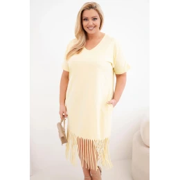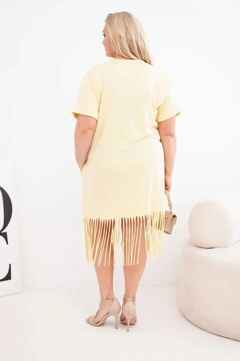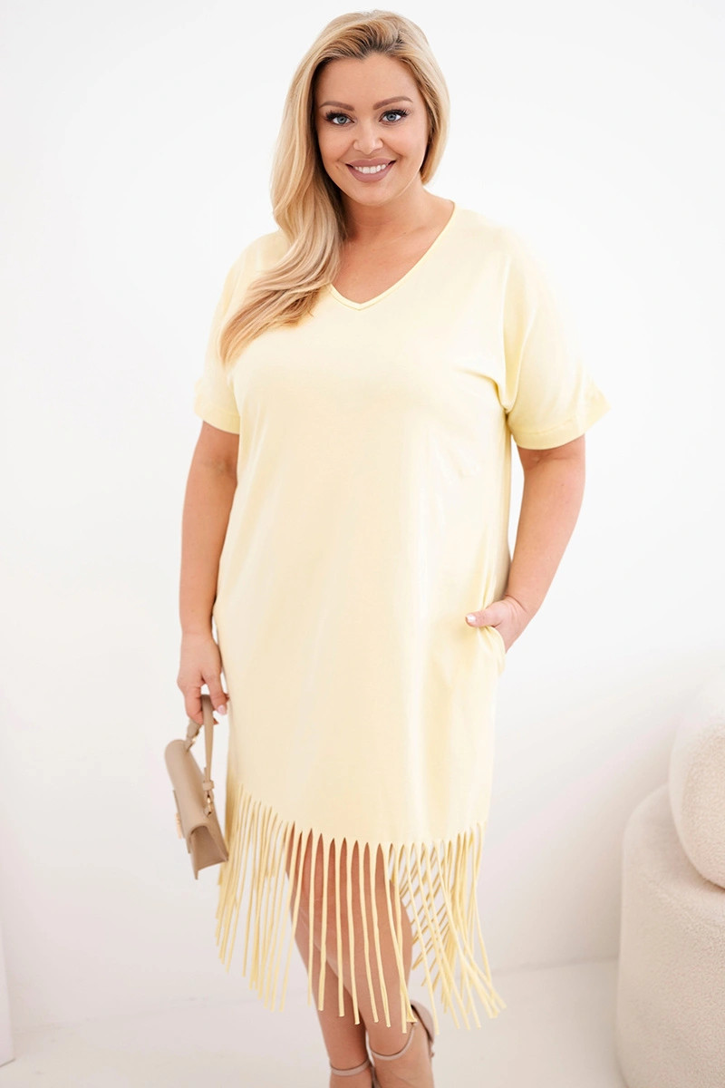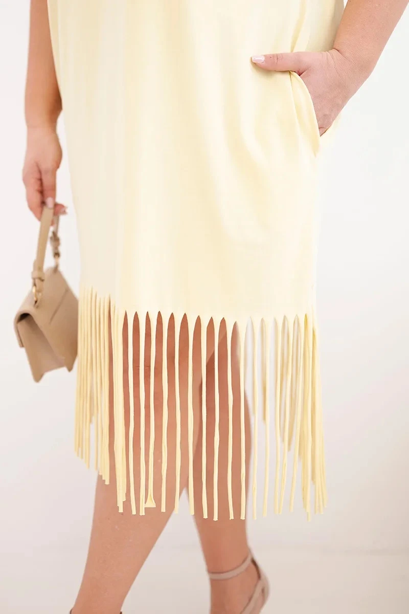 Dámské bavlněné šaty s výstřihem do V a třásněmi na spodním model 22036061 žlutá - K-Fashion