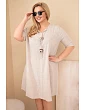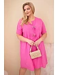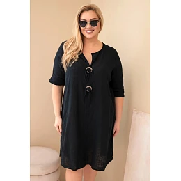 Volný střih jemně padne na postavu, nepřiléhá těsně a zaručuje plnou volnost pohybu. Model má rukáv do lokte a výstřih do V s ozdobným zavázáním a dekorativními prvky, které celku dodávají originální charakter. Jsou to oversize dámské šaty, které skvěle zakryjí nedokonalosti a zvýrazní přednosti postavy.
