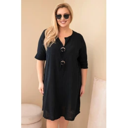 Dámské bavlněné šaty ve velikosti Plus s vázáním u výstřihu černá