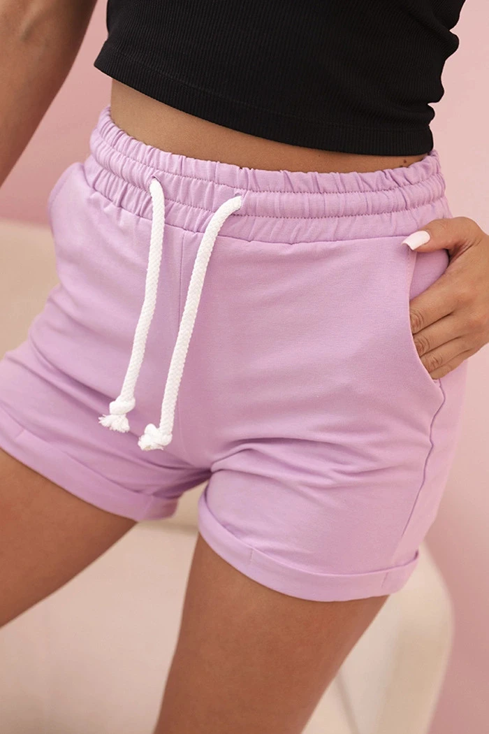 Dámské bavlněné šortky s gumou a zavazováním v pase světle fialové