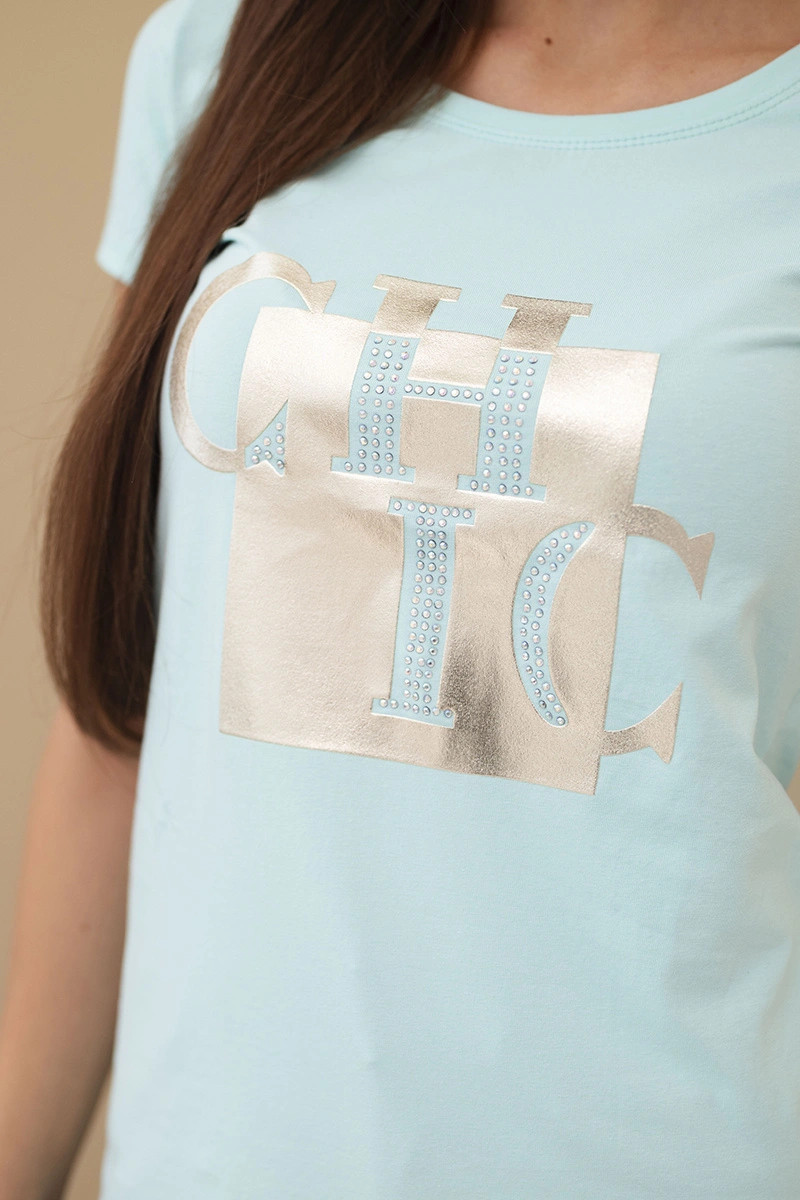 Dámské bavlněné tričko s potiskem CHIC mentolová