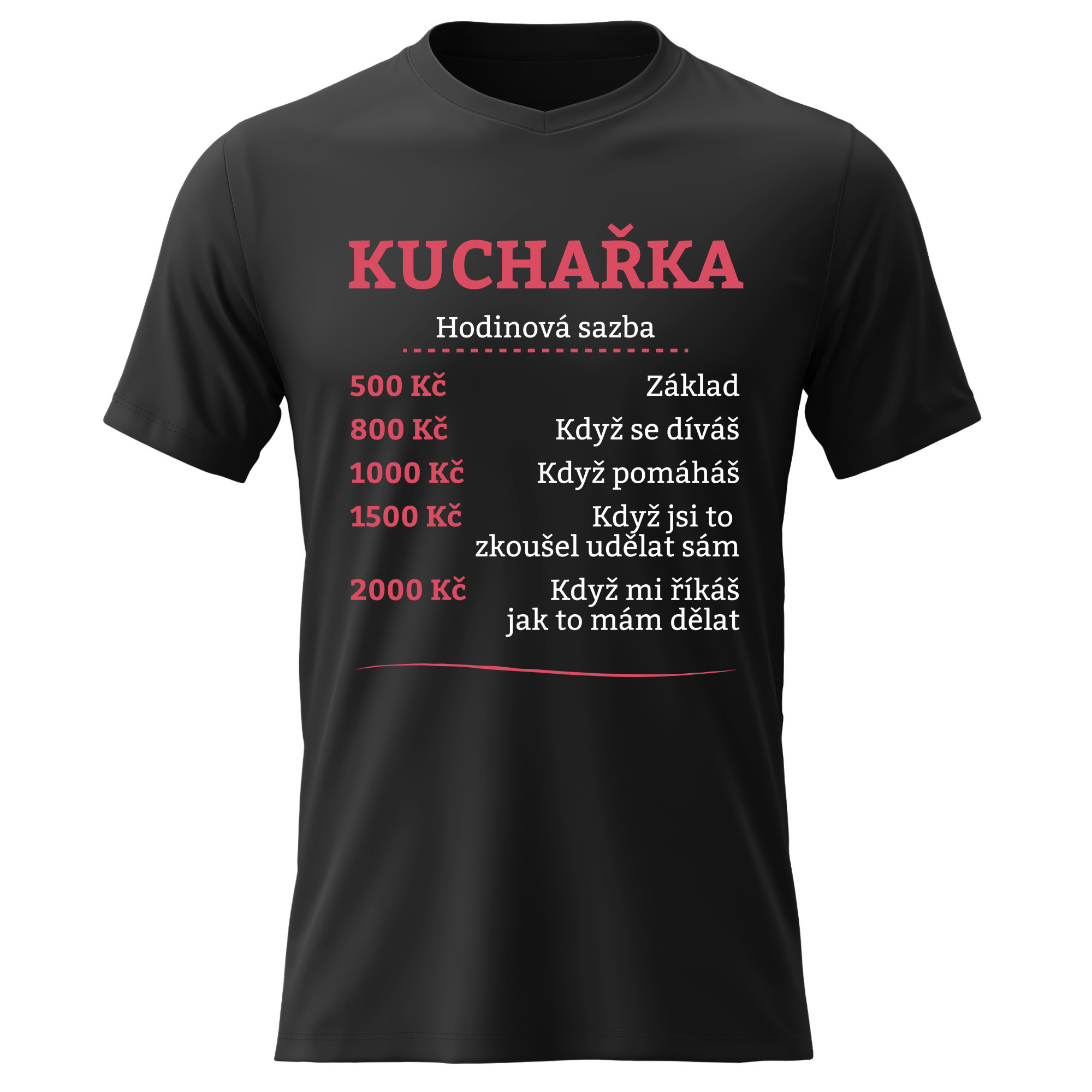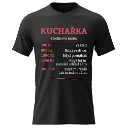 Vtipné tričko s potiskem HODINOVÁ SAZBA KUCHAŘKA – styl s nadhledem