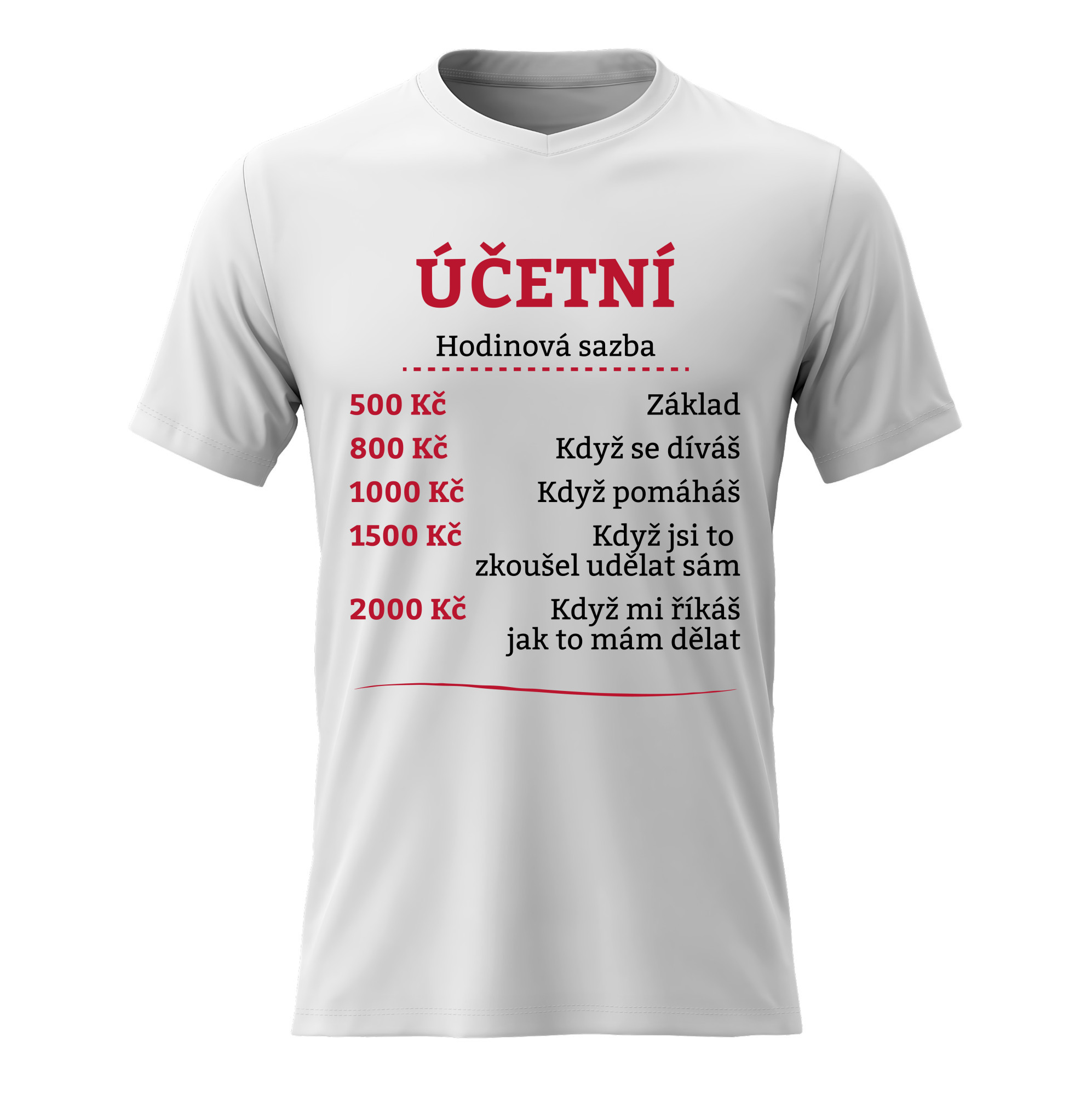 Vtipné tričko s potiskem HODINOVÁ SAZBA ÚČETNÍ – styl s nadhledem