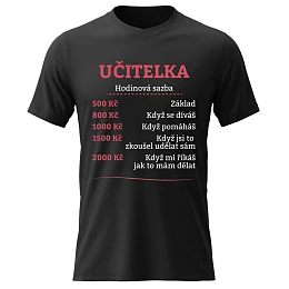Vtipné tričko s potiskem HODINOVÁ SAZBA UČITELKA – styl s nadhledem
