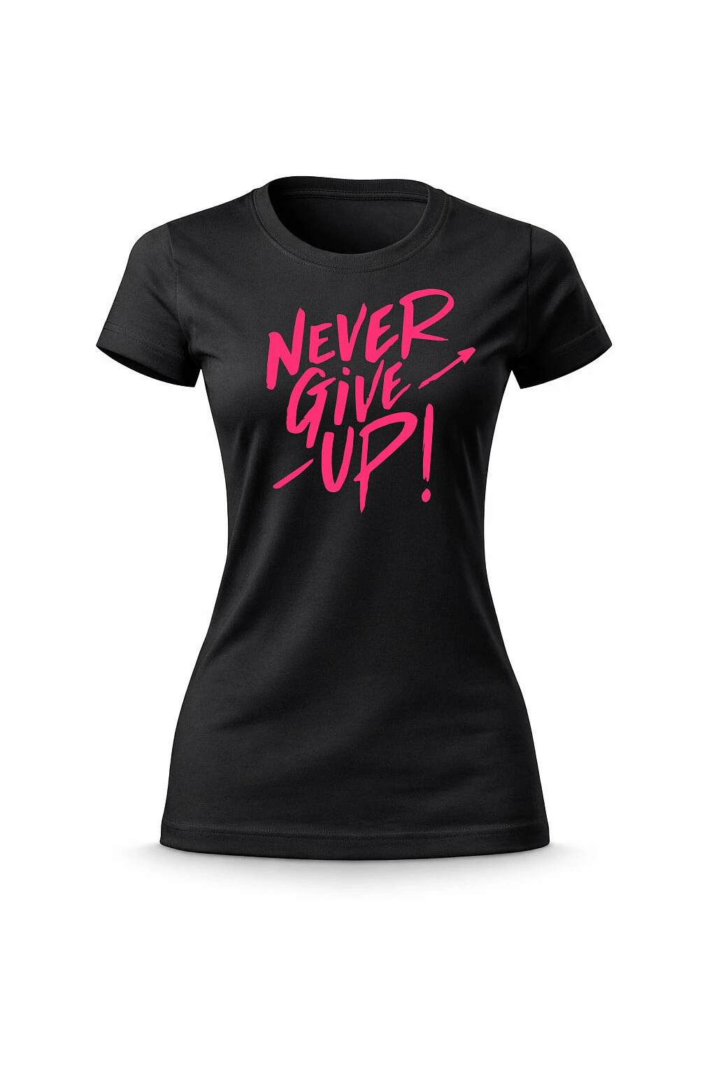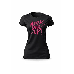 Dámské bavlněné tričko s potiskem - NEVER GIVE UP! - černé