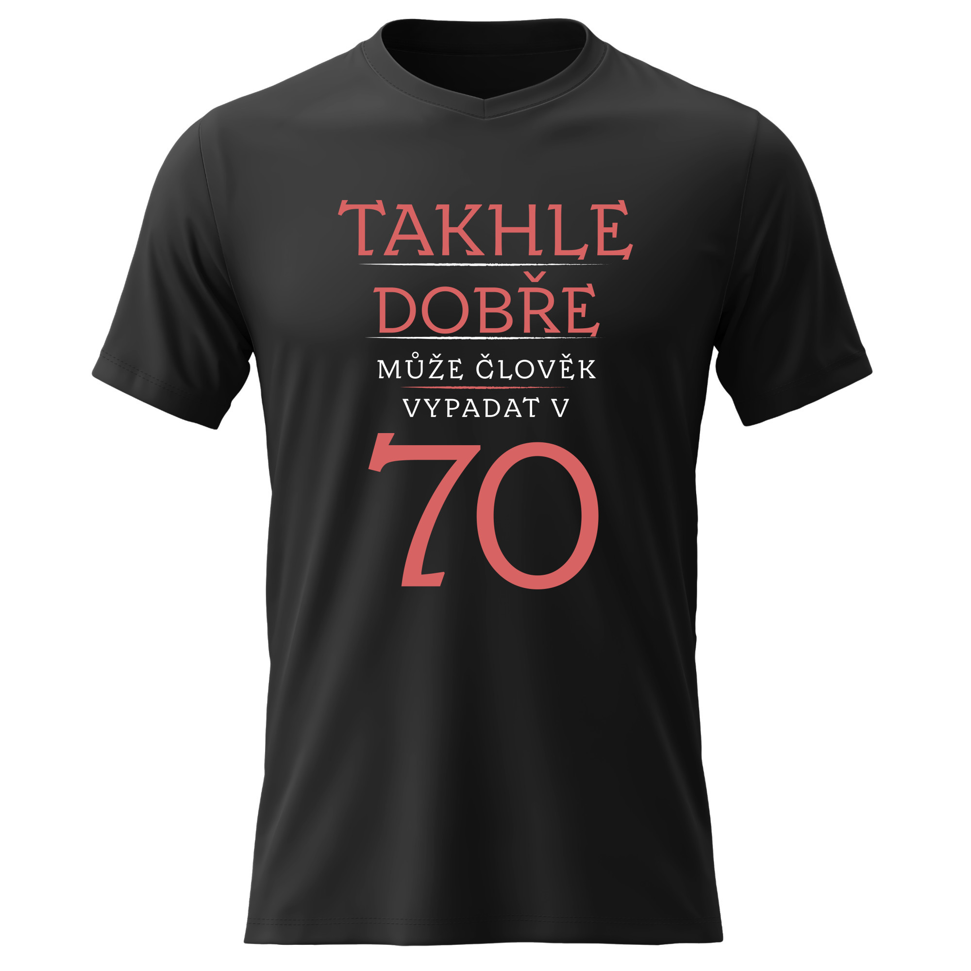Originální potisk: „TAKHLE DOBŘE MŮŽE ČLOVĚK VYPADAT V 70 (ČERVENÁ)“
