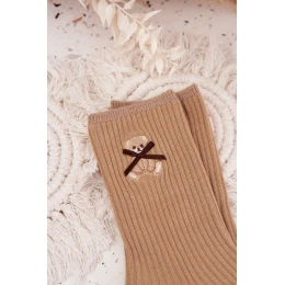Dámské bavlněné žebrované ponožky s medvídkem – světle hnědé