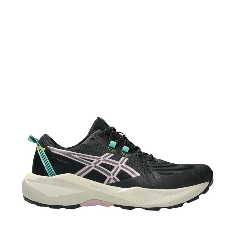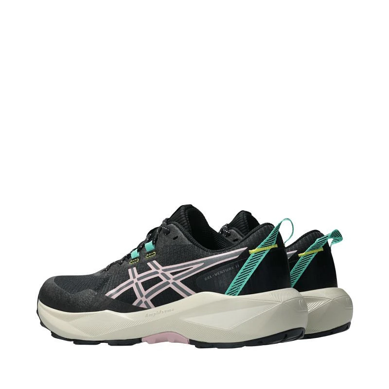 Buty damskie do biegania Asics Gel-Venture 11 1012B933 002 Damskie buty trailowe Asics to model stworzony z myślą o bieganiu w terenie, lekkich wędrówkach oraz poruszaniu się po miejskich ścieżkach. Przeznaczone dla kobiet o neutralnym typie stopy oraz supinacji. Cholewka łączy przewiewne materiały tekstylne z syntetycznymi wzmocnieniami. Miękka wyściółka oraz tekstylny język. Wkładka OrthoLite Hybrid Max Lite. Za amortyzację odpowiada połączenie technologii Amplifoam+ oraz systemu GEL umieszczonego w tylnej części podeszwy. Klasyczne sznurowanie. Zewnętrzna podeszwa z wyraźnym, terenowym bieżnikiem. Drop na poziomie 10 mm wspiera naturalną pracę stopy, zwiększając komfort zarówno podczas biegu, jak i marszu. Dane techniczne:· Cholewka z materiału tekstylnego o siateczkowej strukturze została zmodyfikowana z wykorzystaniem bezszwowych detali w celu wygodniejszego dopasowania· Technologia Gel w tylnej części obuwia – system łagodzący wstrząsy i dodający sprężystości