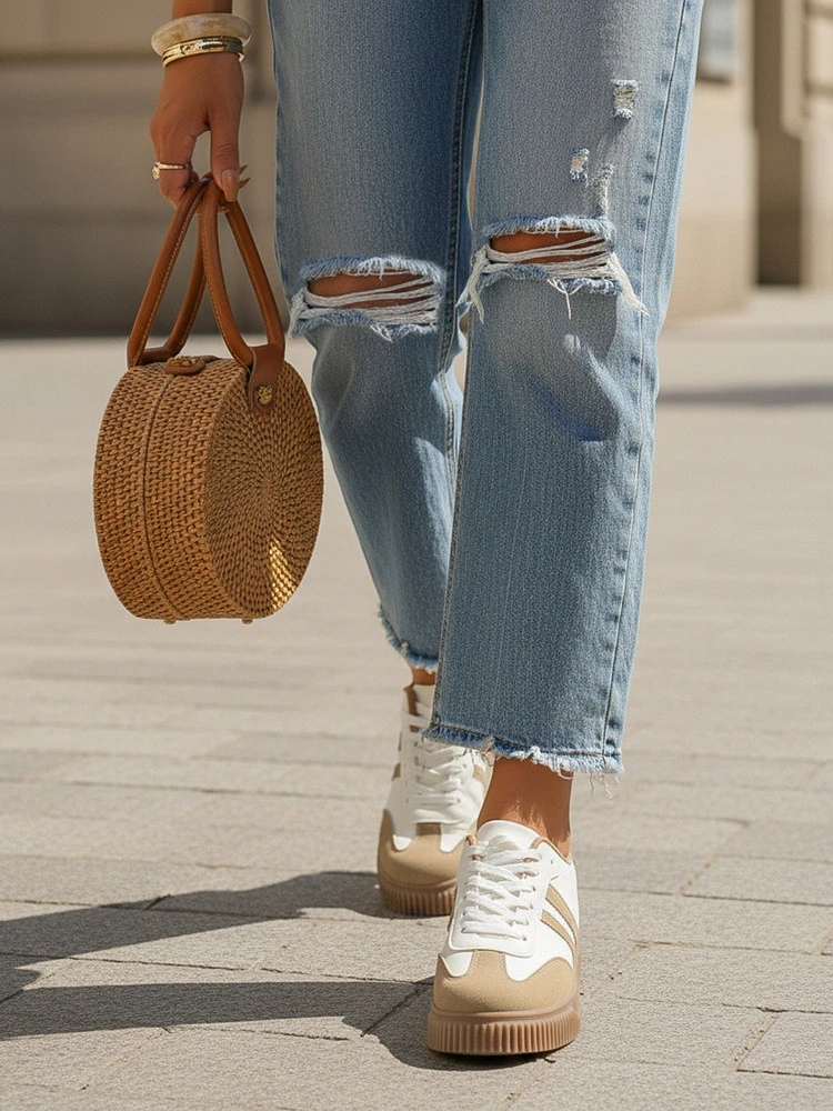 Sportowo-casualowy fason pozwala łączyć je z jeansami, sukienkami oraz codziennymi zestawami miejskimi.