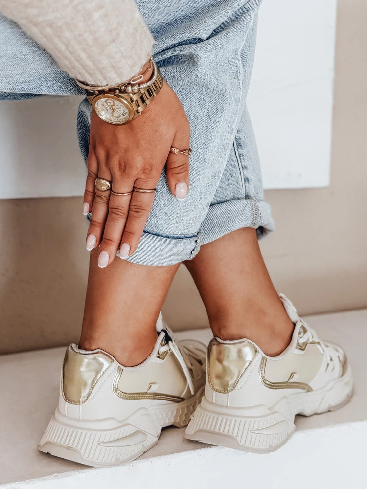 Damskie sneakersy o nowoczesnym designie i sportowym charakterze to propozycja dla kobiet ceniących komfort oraz styl. Solidna podeszwa z lekkim podwyższeniem dodaje stabilności, a klasyczne sznurowanie ułatwia dopasowanie do stopy.