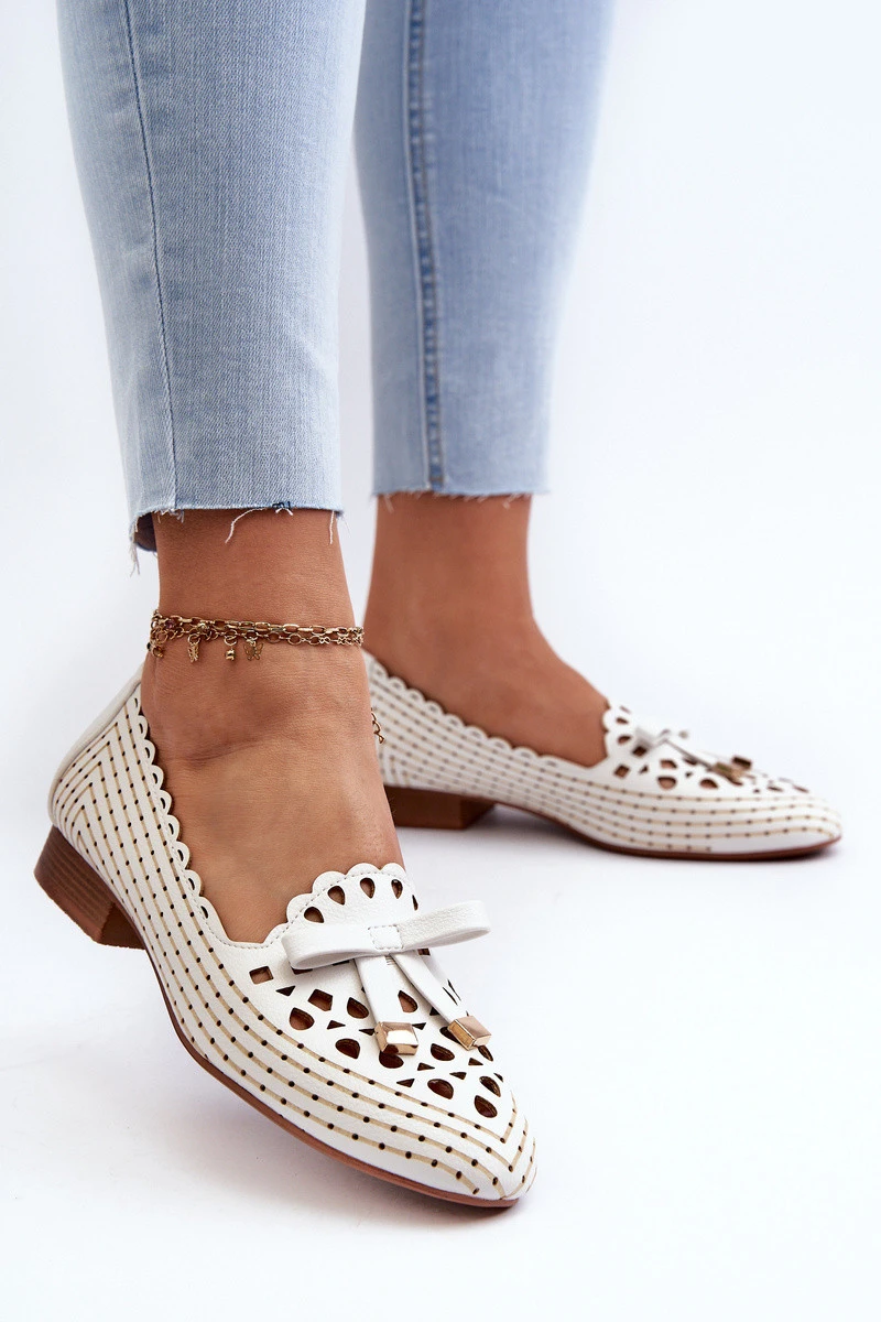 Dámské bílé lodičky s průpletovou mašlí Nestavia