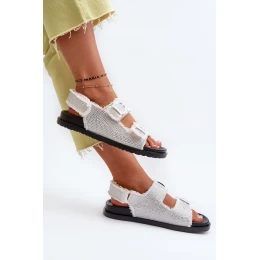 Dámské zdobené sandály vyrobené z textilního materiálu. Umístěné na platformě. Zapínají se vzadu na suchý zip, což zajišťuje stabilitu a snadné přizpůsobení. Ideální na letní procházky nebo večerní výlety. Tento model bude ideální pro širokou nohu! Při výběru velikosti se řiďte tabulkou velikostí.