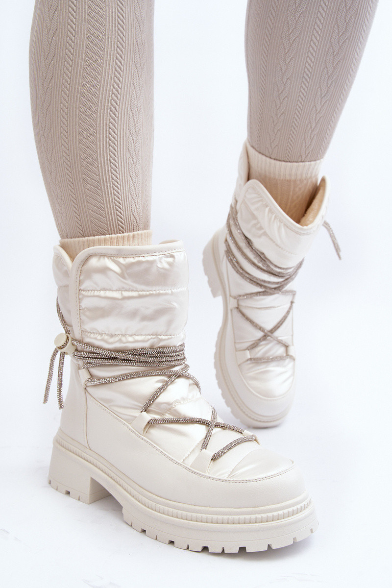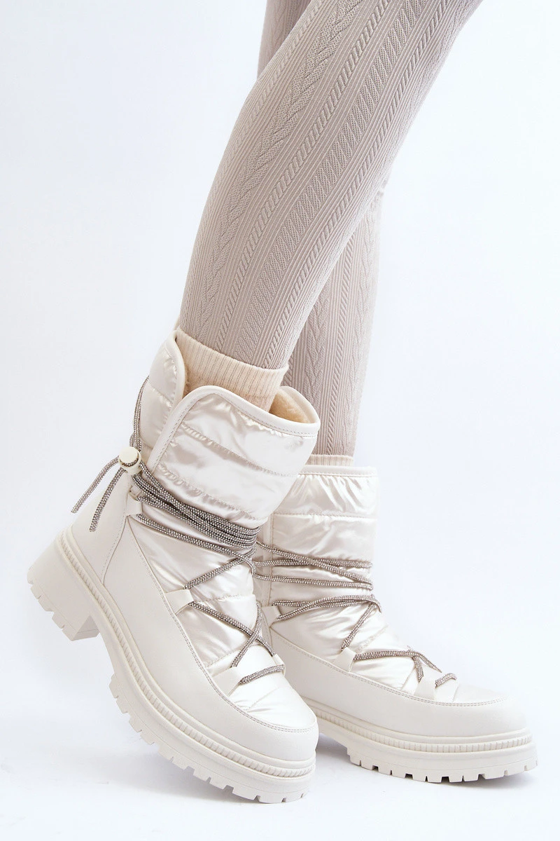 Dámské bílé zimní boty s ozdobným šněrováním Rilana