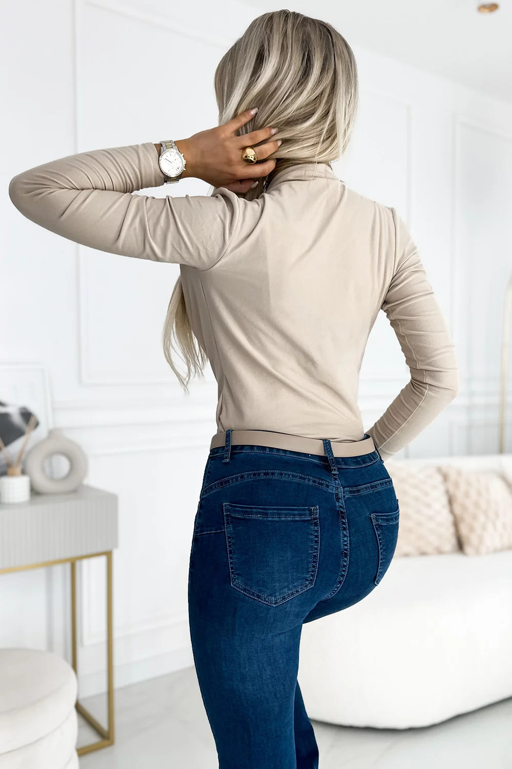 Modelka má na sobě velikost S. Rozměry modelky: výška 175 cm, prsa 85 cm, pas 63 cm, boky 95 cm.
