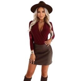 Dámské body 375-9 NUMOCO - bordó barva - z příjemného materiálu - hluboký obálkový výstřih ve tvaru V - dlouhé rukávy