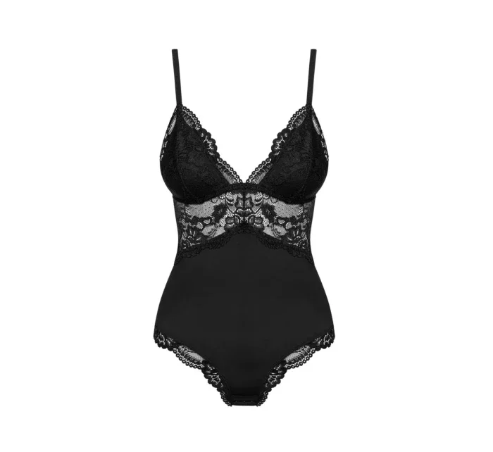 Dámské erotické body 810-TED black OBSESSIVE - černá barva - sexy černé a krajkové dekorace - košíčky jsou mírně vyztužené - zvýrazněná poprsí - průsvitná krajka pod prsy a na zádech - nastavitelné ramínka - elastický materiálMateriálové složení: 85% polyamid + 15% elastan