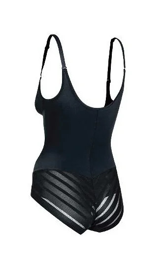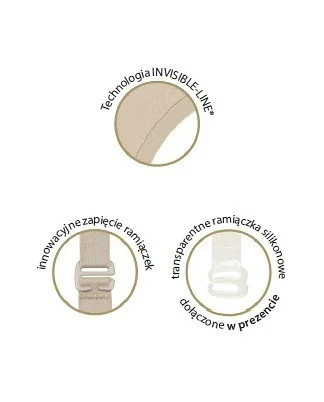 Tvarující dámské body, které dosahuje pod poprsí. Body se pod oblečením nerýsuje díky moderní bezešvé technologii zakončení okrajů, které jsou ultratenké a vyrobené s použitím technologie INVISIBLE-LINE. Zadní díl tohoto modelu zdobí vsadky z průhledné síťoviny. Body je vyrobené z jemného a prodyšného materiálu, skvěle se přizpůsobí postavě a je doplněné o speciální látkové panely, které tvoří elastické zeštíhlující části. Díky tomuto modelu docílíte zeštíhlení pasu, ploššího bříška a pěkně vytvarovaných a nadnášených hýždí. Body má v rozkroku nastavitelné zapínání. Ramínka je možné nastavit a odepnout pomocí moderního zapínání. Komplet doplňují silikonová ramínka.