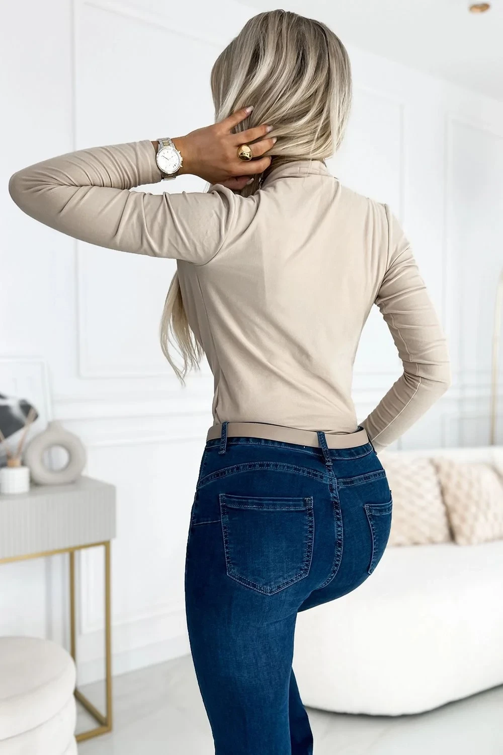 Dámské body 375-7 NUMOCO - béžová barva - ušité z příjemného materiálu - dlouhé rukávy - hluboký obálkový výstřih ve tvaru V