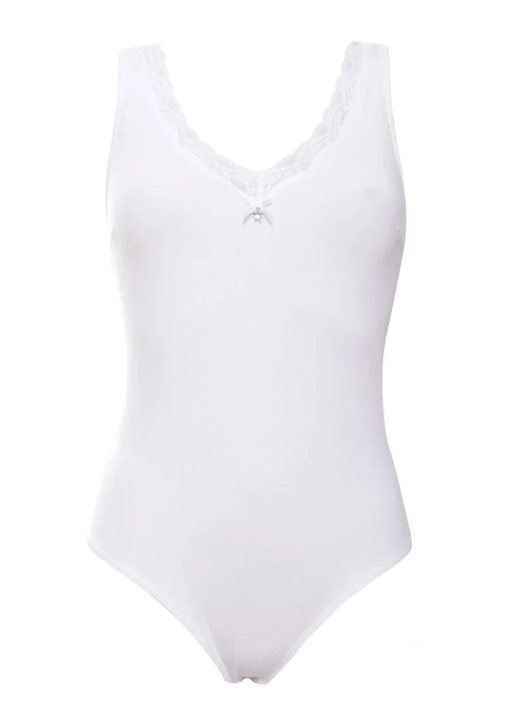 Dámské tílkové body z nové kolekce EveryBody od značky Siélei. Body je nevyztužené, má výstřih do V s kombinací krajky. Uprostřed je našitá malá mašlička s ozdobnou hvězdičkou. Body je z organické bavlny, proto je velmi jemné a příjemné. Zapíná se na 3 háčky ve dvou řadách. V rozkroku je zapracován bavlněný klínek pro komfortní nošení. Je baleno v dárkové krabičce.