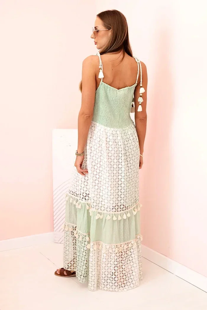 Dámské boho šaty s ramínky s výšivkou a krajkou mincovna