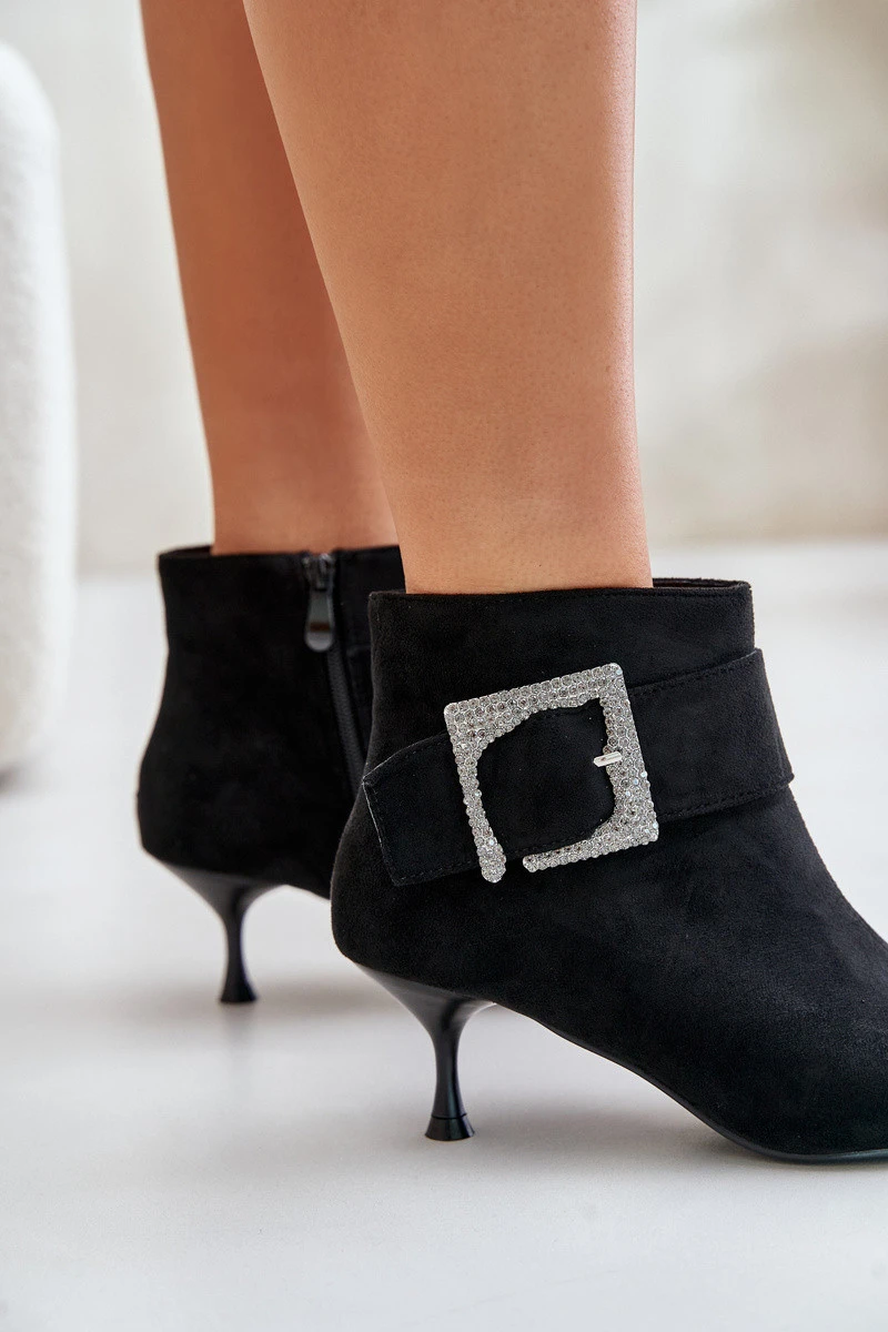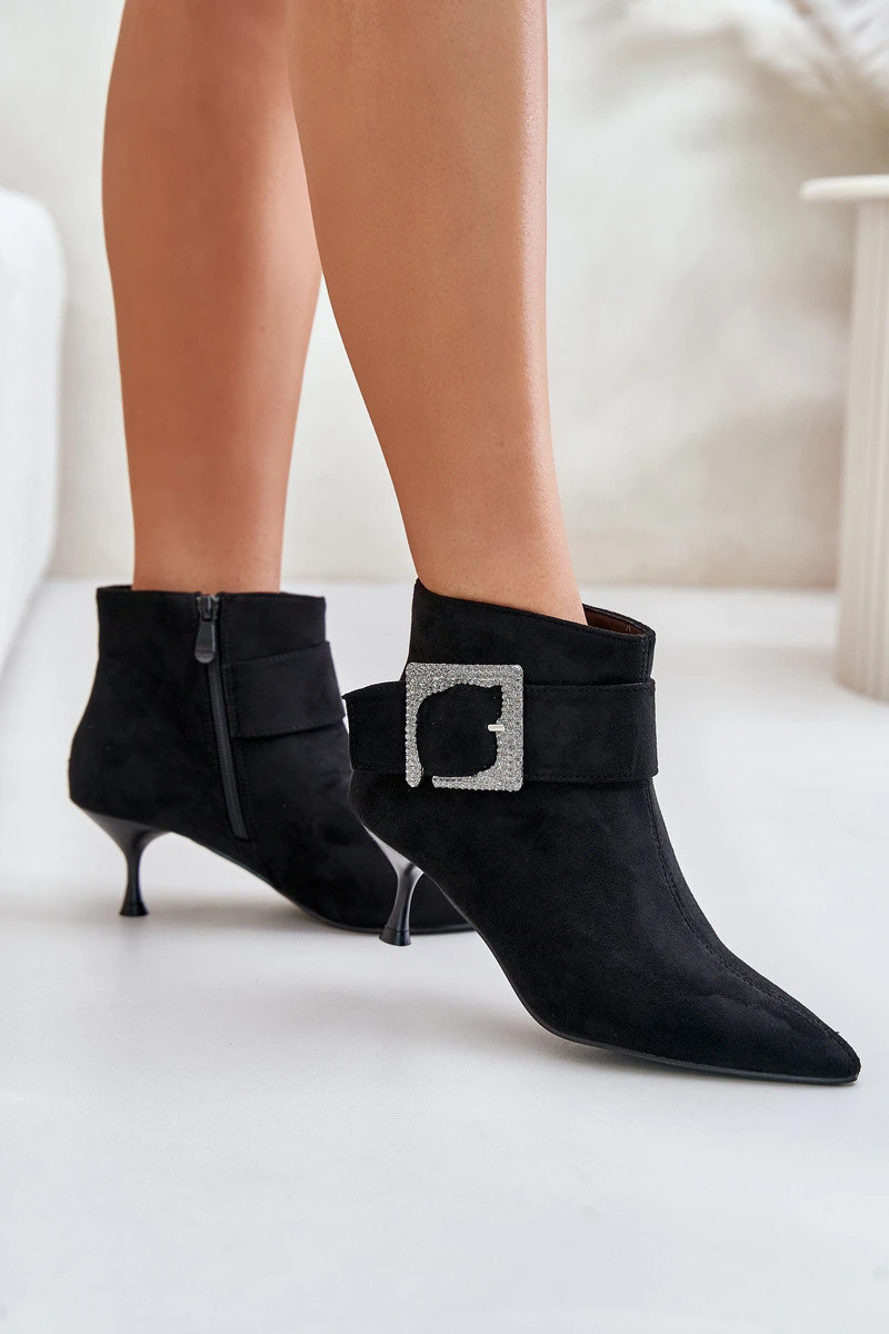 Dámské botky na jehlovém podpatku s ozdobnou sponou černé model 21671085 - Boto