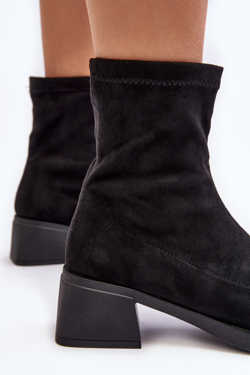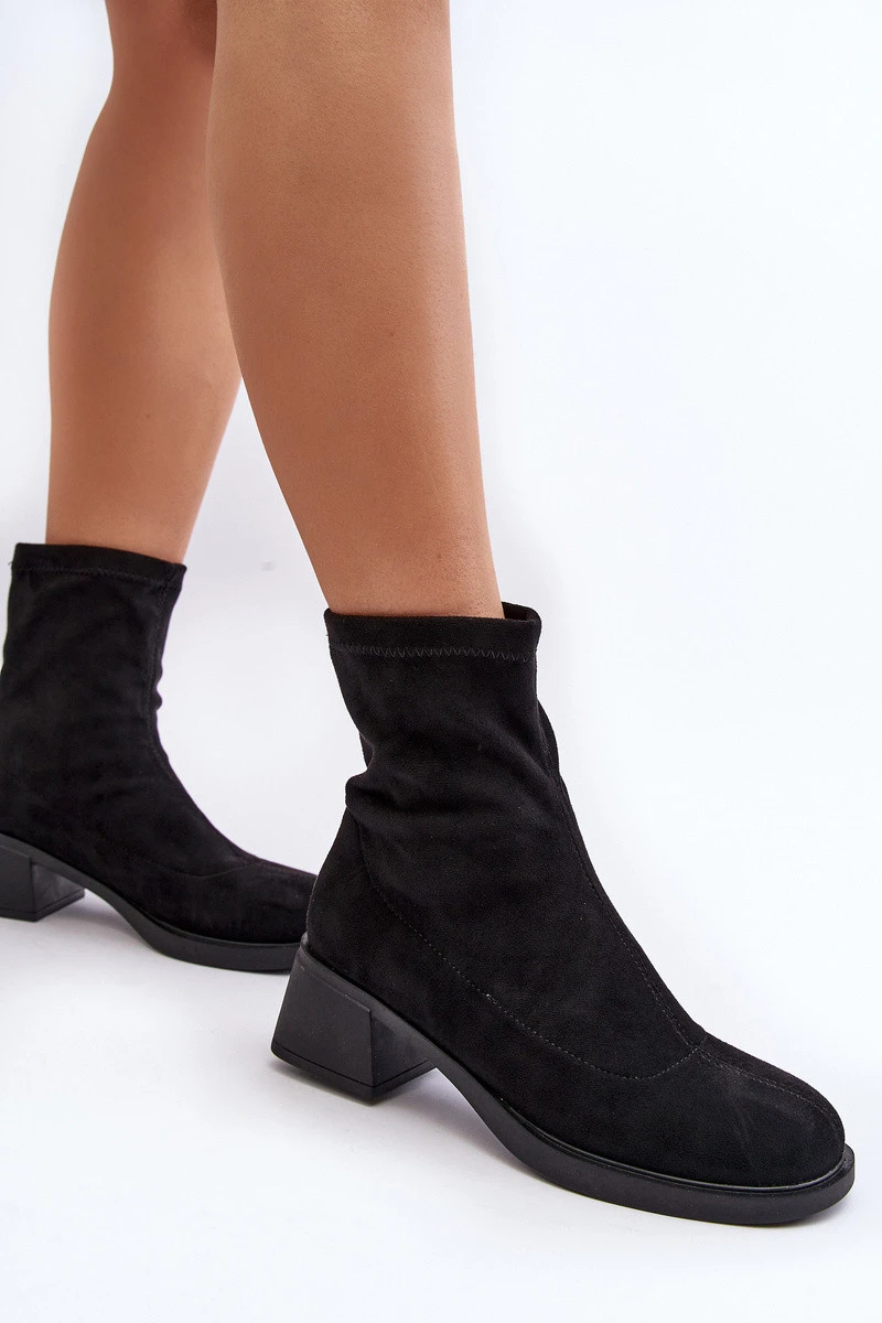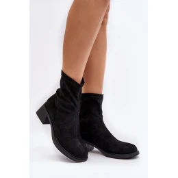 Dámské kozačky vyrobené z ekosuede. Nízký kubistický podpatek. Zaoblený špičák. Kotníková výška. Klasický styl, který se hodí k téměř každému podzimnímu outfitu! Při výběru velikosti se řiďte tabulkou velikostí.