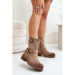 Dámské Botky Na Nízkém Podpatku S Přezkami Tmavě Béžové model 21671197 - Boto