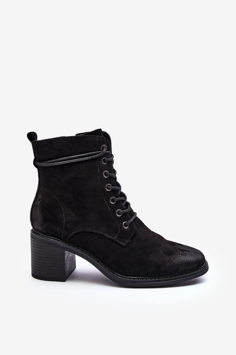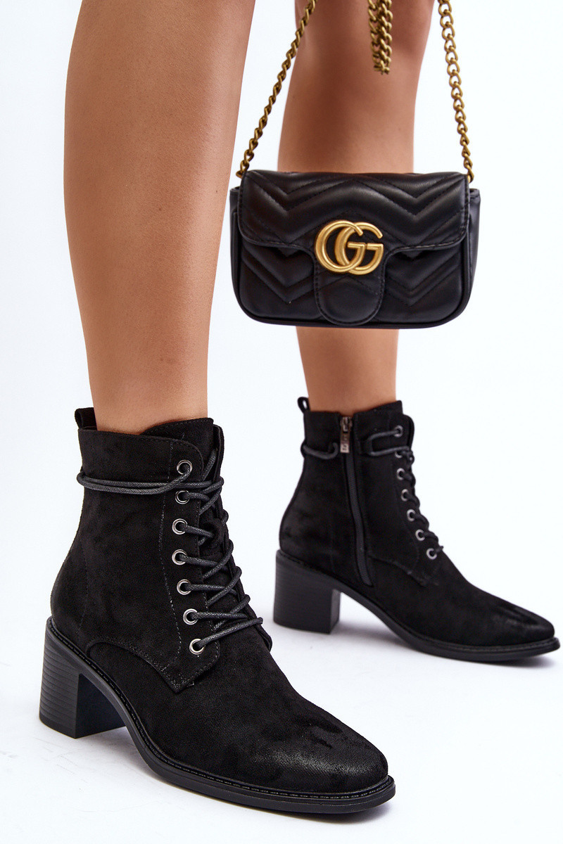 Dámské botky na nízkém podpatku se šněrováním černé model 21644862 - Boto