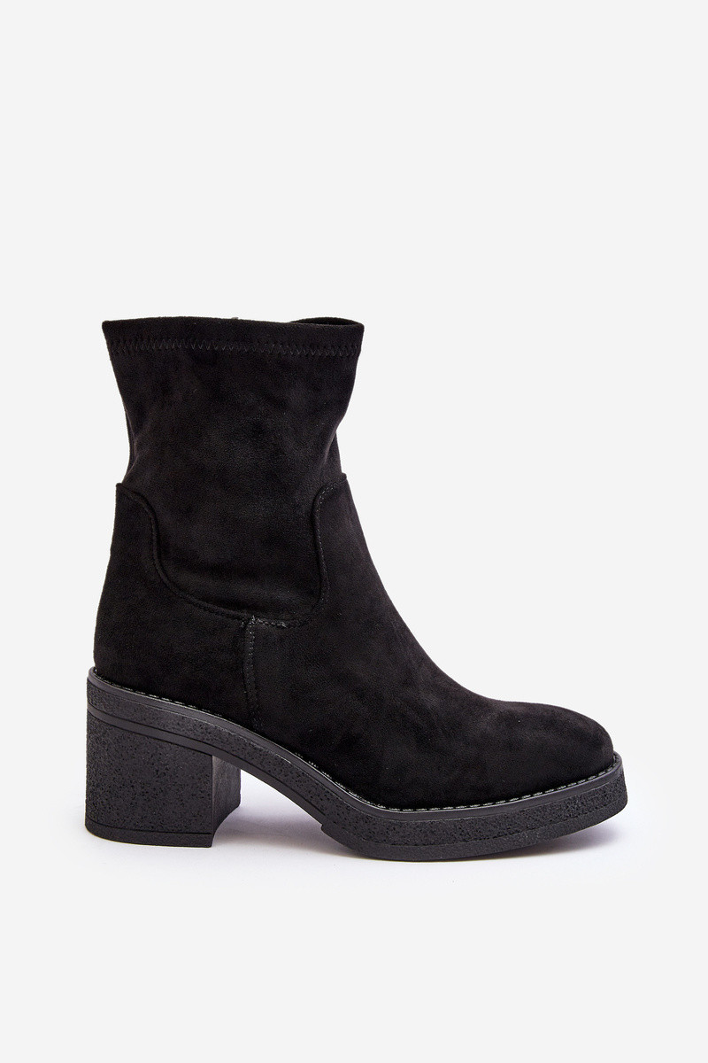 Klasické dámské botky, které lze kombinovat s mnoha podzimně-zimními outfity! Vyrobeno z ekologického semiše. Umístěno na podpatku ve tvaru sloupku. Zakulacené špičky. Částečně vyloženo obuvním polštářkem. Určitě je musíte mít! Při výběru velikosti se řiďte tabulkou velikostí.