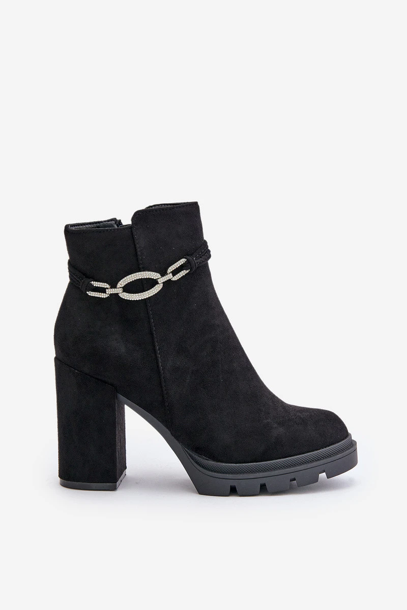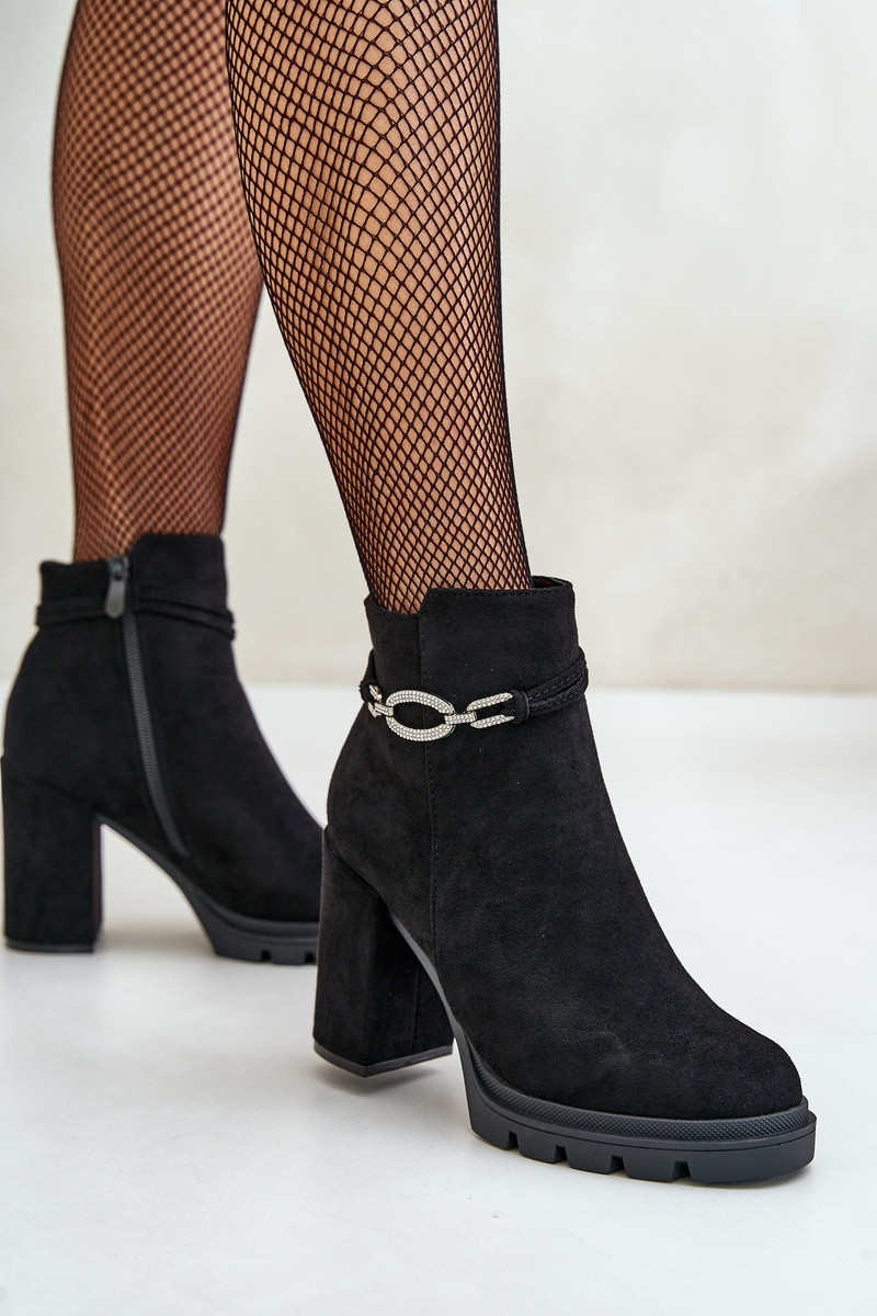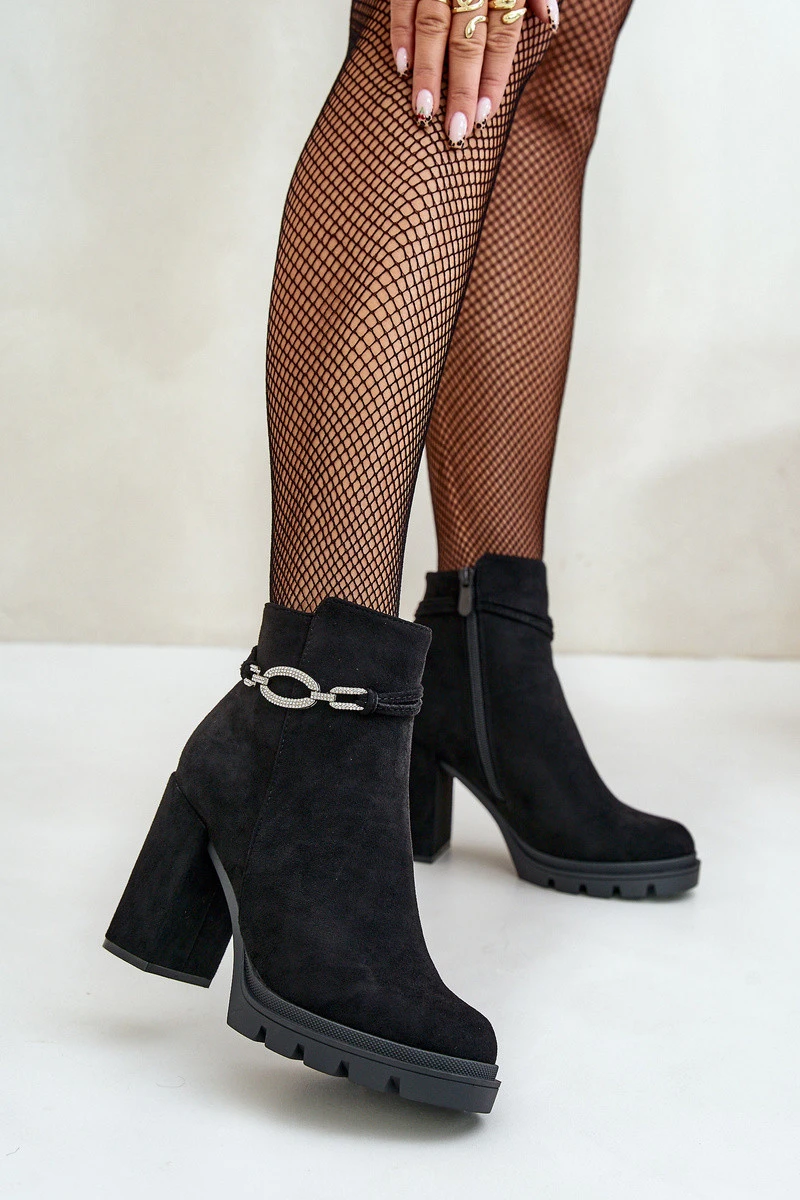 Dámské botky na podpatku eko semiš s ozdobným páskem černé model 21669769 - Boto