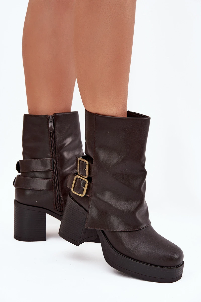 Dámské Botky Na Podpatku S Přezkami Čokoládové Marena
