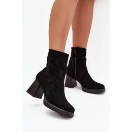 Dámské Botky Na Podpatku Z Eko Semiše Se Zipem Černé model 21705632 - Boto
