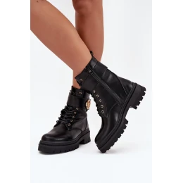 Dámské Botky Pracovní Se Zlatým Detalem Zateplené Černé model 21706796 - Boto